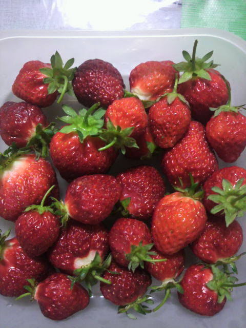 ちょっと甘味が足りないけど孫のヒロは喜んで服が苺まみれになりながら食べてます(^O^)